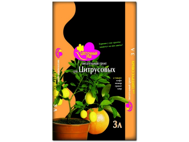 ВОЛШЕБНАЯ ГРЯДКА грунт ЦВЕТОЧНЫЙ РАЙ Цитрусовые - специально разработан для плодоносящих комнатных сортов цитрусовых культур. Его сбалансированный состав по макро- и микроэлементам с оптимальными агрофизическими свойствами создаст условия для естественного созревания плодов.
