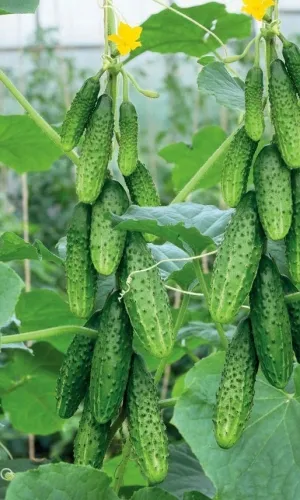 Очень ранний (35-37дней), партенокарпический гибрид со стабильным плодоношением высокотоварных плодов!. Обильно плодоносит как в открытом грунте, так и в пленочных и обогреваемых теплицах все лето! Растение с укороченными междоузлиями, с пучковым (2-3 шт.) заложением завязи. Вынослив к основным болезням огурца, в т.ч. пероноспорозу, кладоспориозу и вирусу огуречной мозаики. Огурчикихрустящие, не перерастают, длиной 9-10 см, вкусные, хрустящие и ароматные. Хороши как в салатах, так и в засолке.